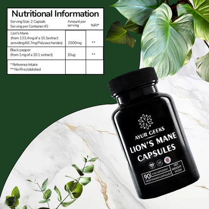 Ayurgeeks Lion's Mane capsules are formulated to provide a high concentration of active compounds